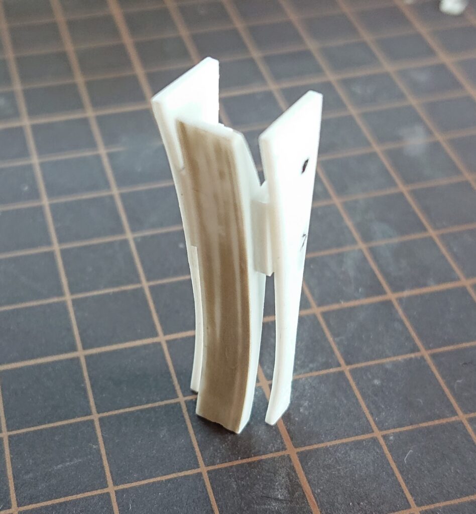 このパーツは脛の部分です。凸凹はエポパテで埋めてあります。ここからさらにもって形を出していきます。